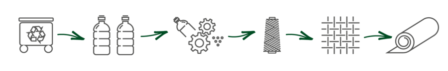 Die neue Kollektion GreeNature besteht aus recyceltem Polyester, das zerkleinert und zu Polyestergarn gesponnen wird. Plastik, wie beispielsweise gebrauchte PET-Flaschen, das sonst die Umwelt belastet, gelangt hier wieder in den Produktkreislauf.