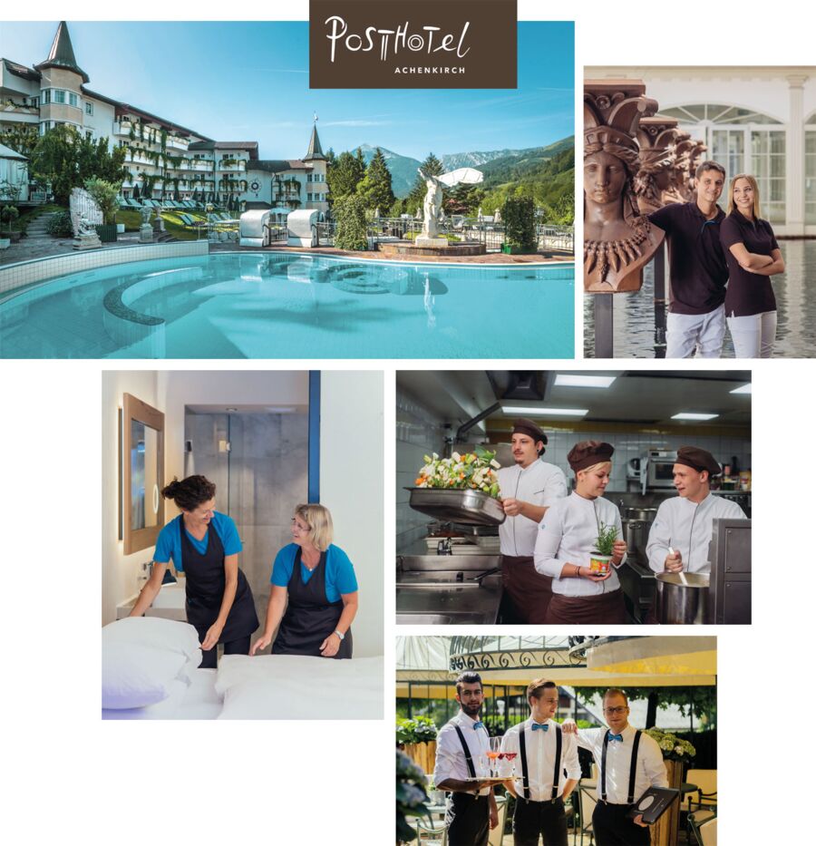 Das 5-Sterne-Wellnesshotel am wunderschönen Achensee in Tirol setzt für seine Gäste auf Wohlfühlatmosphäre und bei der Ausstattung seiner Mitarbeiter*innen auf CG Markenqualität. Von der haubengekrönten Gourmetküche über den exzellenten Service bis zum erholsamen Wellnessbereich – überall wurde die Mitarbeiterkleidung durch passende Akzente auf das Farbkonzept und Ambiente des Hotels abgestimmt.